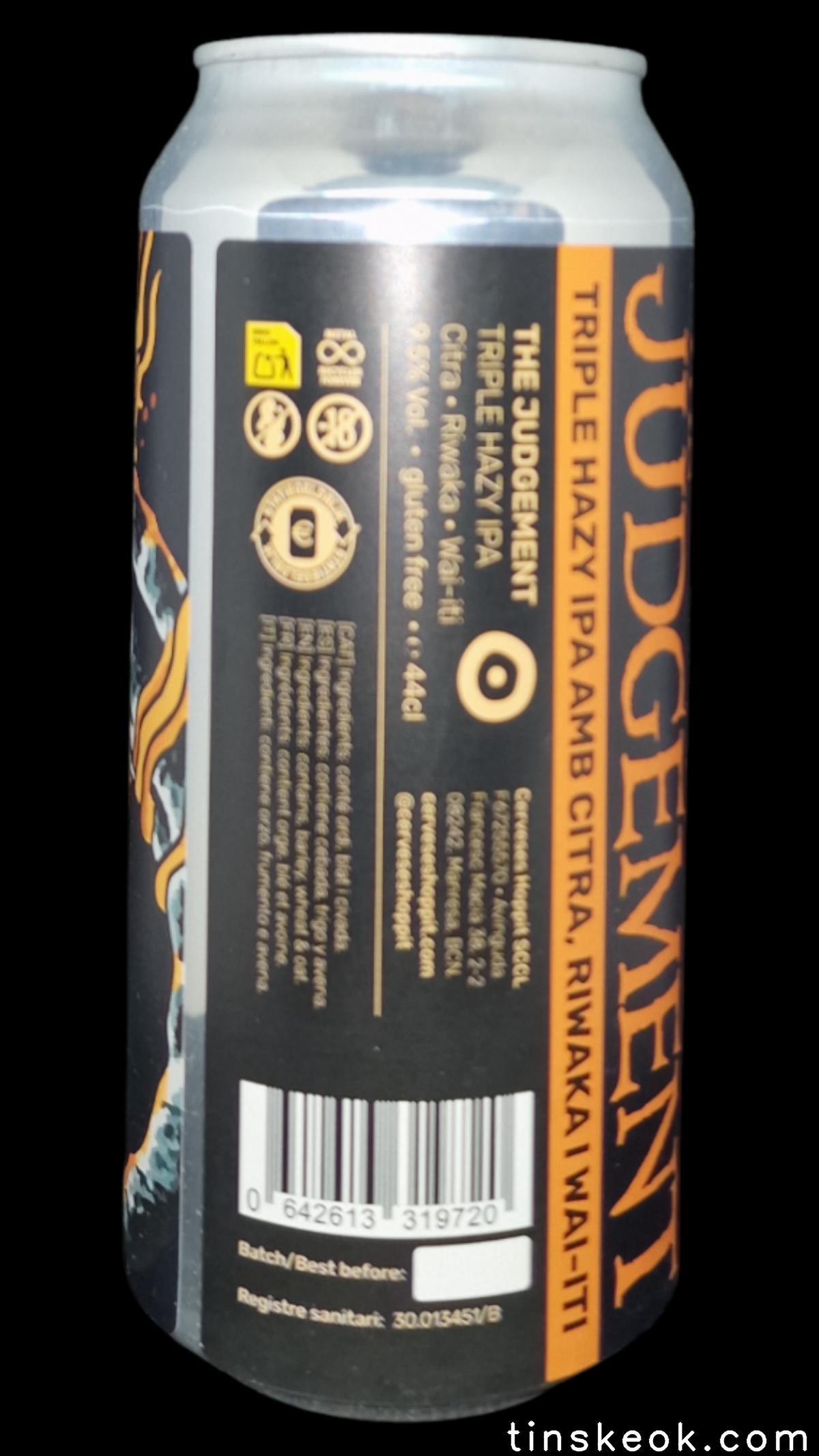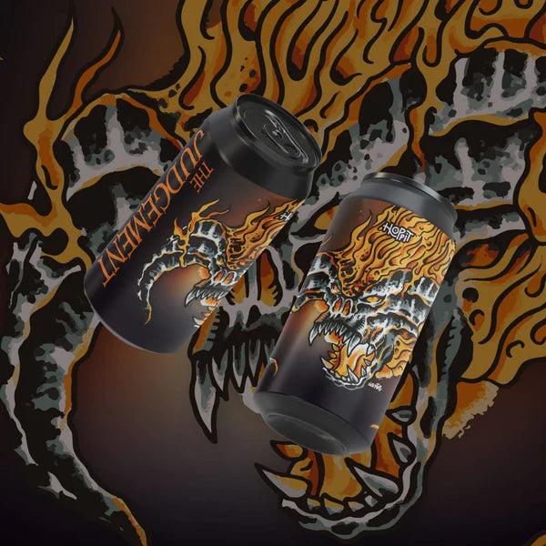 The Judgment es una New England TIPA elaborada por Hoppit. Intensa, sedosa y extremadamente aromática. Presenta un perfil explosivo de frutas tropicales maduras, cítricos frescos y notas de melocotón gracias al trío de lúpulos Citra Hyperboost, Riwaka y Wai-iti. En boca es jugosa, envolvente y con un final ligeramente cálido que equilibra su 9,5%. Ideal para quienes buscan una experiencia IPA potente, afrutada y muy aromática.
