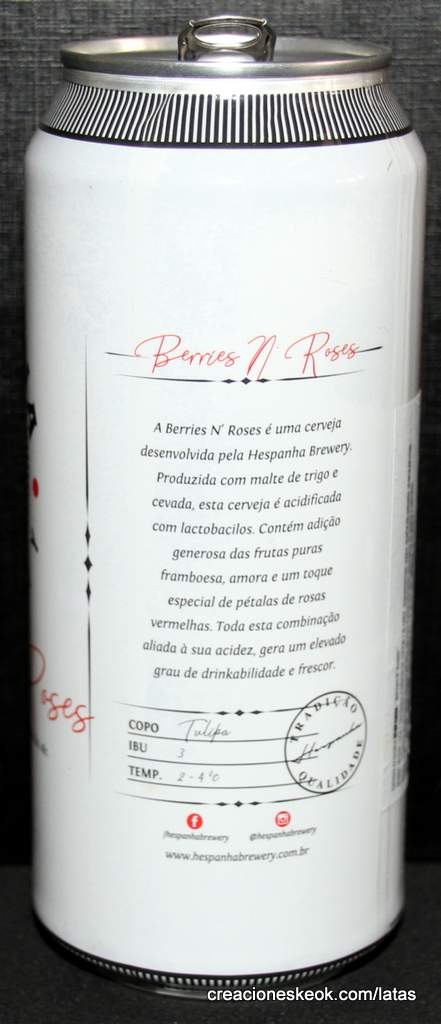 Berries N' Roses de Hespanha es una Sour/wild ale procedente de Brasil. Tiene una nota de 4,18 en Untappd, en boca tiene un nivel de alcohol bajo (3.8%) junto a un amargor moderado. Las Sour ales, también conocidas como wild ales, forman una categoría que engloba todo tipo de ales fermentadas con bacterias diferentes a las levaduras cerveceras tradicionales—siendo las Brettanomyces, Lactobacillus, Pediococcus o las Acetobacter los ejemplos más comunes. Estas cervezas se elaboran por medio de fermentación espontánea. Las levaduras aéreas responsables de dicha fermentación varían de una parte a otra del mundo, siendo la actividad cervecera muy probablemente una de las causas de esta variación.