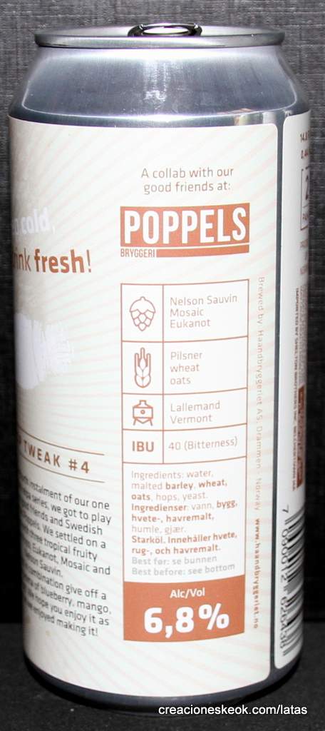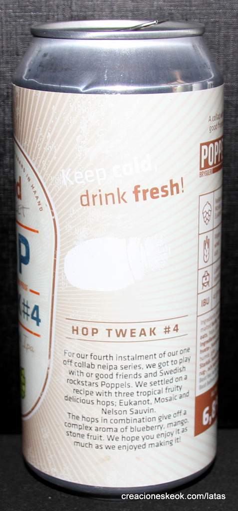 Para nuestra cuarta entrega de nuestra serie única de colaboraciones neipa, pudimos jugar con o buenos amigos y estrellas de rock suecas Poppels. Nos decidimos por una receta con tres deliciosos lúpulos afrutados tropicales; Eukanot, Mosaic y Nelson Sauvin. Los lúpulos combinados desprenden un complejo aroma a arándano, mango, fruta de hueso. ¡Esperamos que lo disfrutes tanto como nosotros disfrutamos haciéndolo!