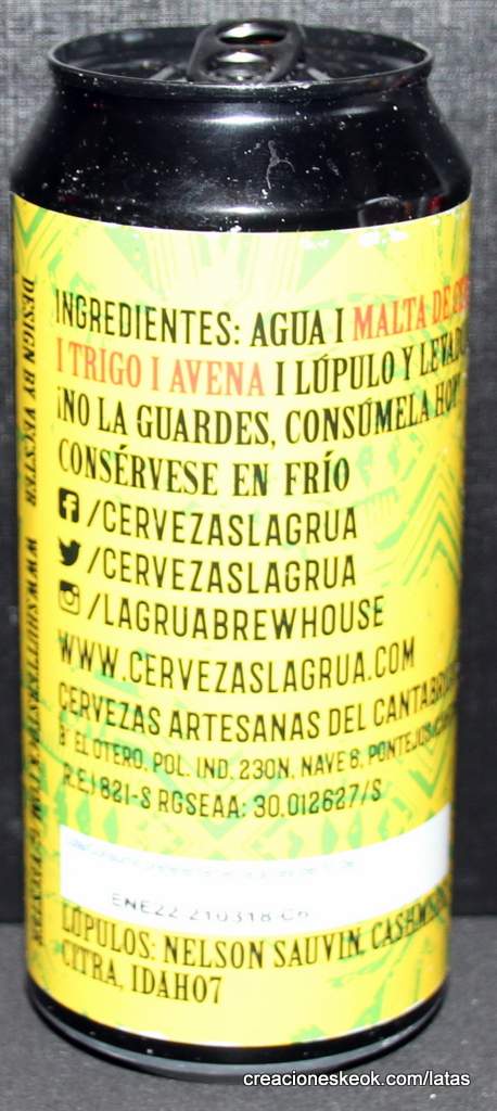 Cerveza artesana estilo Neipa con doble dry hopping y lúpulos Nelson Sauvin, Citra, Cashmere y Mandarina Bavaria. Un zumo tropical con aroma muy potente a frutas y sabor piña y coco. Contiene Trigo y Avena. La cerveza que jugará con tu cuerpo y mente.