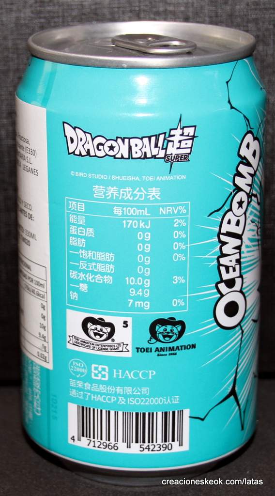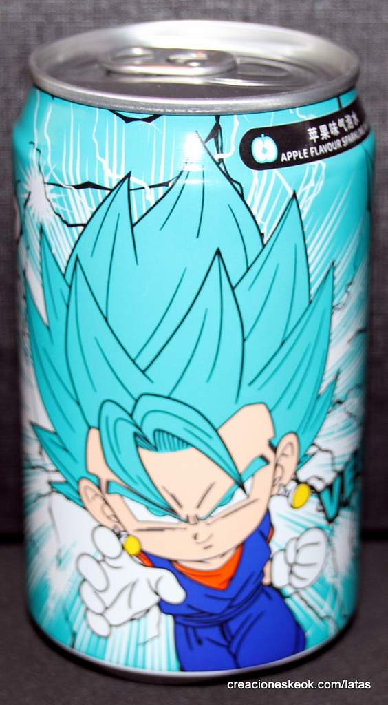 ¡Por fin tenemos bebidas refrescantes de Dragon Ball Super! En esta ocasión, de la mano de Ocean Bomb, llegan estas impresionantes latas de Dragon Ball Super para beber y coleccionar. ¡Tus héroes favoritos llegan en lata para dar un toque de sabor especial a esta bebida con gas! Vegetto se une a la colección para dar el toque a Manzana. ¡Colecciónalas!