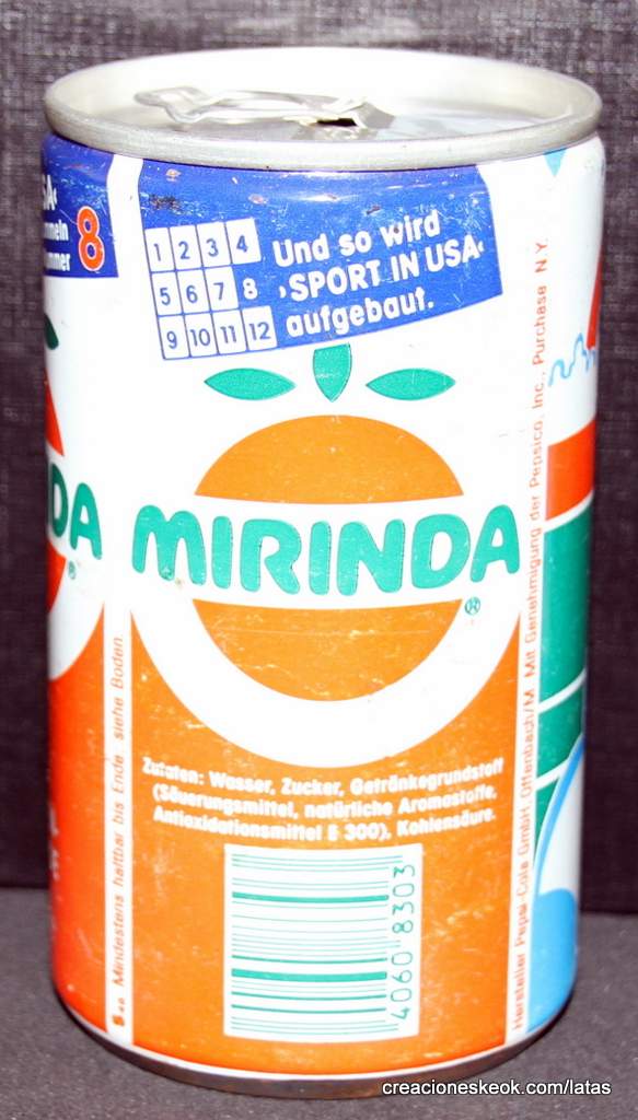 Mirinda se creó originalmente en España en 1959, con distribución global. Su nombre significa admirable en esperanto, hablado por su creador. Mirinda ha sido propiedad de PepsiCo desde 1970 y se vende principalmente fuera de los EE. UU. La RDC ha estado distribuyendo Mirinda desde 1974.