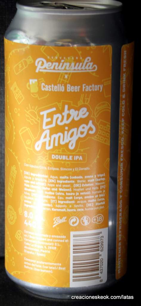 Siempre que podemos, disfrutamos de un buen tiempo Entre Amigos, esta vez con la visita que nos hicieron Castelló Beer Factory. Nos arriesgamos un poco cocinando nosotros la paella teniendo un jurado experto delante, pero salió genial, como esta Double IPA de 8,0% elaborada con Citra, Eclipse, Simcoe y El Dorado. Te recomendamos que escuches ¿Adónde vas? de El Último Ke Zierre, que suele sonar mientras fermentan las cervezas de los castellonenses.