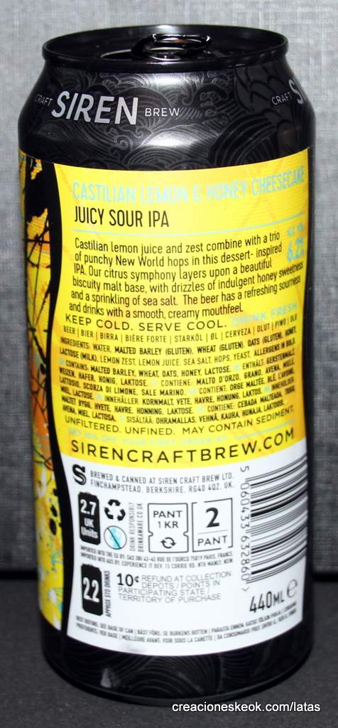 El jugo y la ralladura de limón castellano se combinan con un trío de lúpulos alimonados del nuevo mundo en este postre inspirado en IPA. Esta sinfonía de cítricos se superpone a una hermosa base de bizcocho, con lloviznas de dulzura de miel indulgente y una pizca de sal marina. La cerveza tiene una acidez refrescante y se bebe con una sensación en boca suave y cremosa.