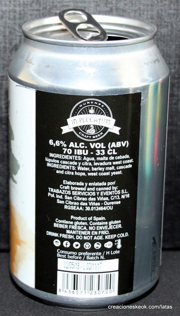 In Peccatum Craft Beer nace en 2013 bajo la marca comercial Cerveza Keltius, elaborando cervezas de corte belga en un pequeño brewpub en la ciudad de Ourense. Poco a poco nuestra empresa va creciendo y alcanzando nuevos mercados, pasando del ámbito local al autonómico y posteriormente al nacional. A su vez, el rango de cervezas iba creciendo, dando rienda suelta a nuestra creatividad y a la demanda de nuevos estilos por parte del mercado. Nuestro punto de inflexión llegó en 2015 con el lanzamiento de la cerveza oficial de la banda de rock más importante de nuestra tierra, Los Suaves. A su vez empezamos a expandir el mercado fuera de nuestras fronteras. Todo esto desembocó en la decisión de prescindir del brewpub y trasladarnos a un polígono industrial, dedicándonos 100% a la fabricación y distribución, y adquiriendo nuevos equipos y maquinarias que nos permitieron triplicar el volumen de elaboración y automatizar gran parte del proceso. Actualmente estamos presentes en 10 países distintos de todo el mundo, producimos más de 35 referencias distintas en tres formatos: lata, botella y barril, y aspiramos a seguir creciendo y mejorando la calidad de nuestras cervezas día a día.