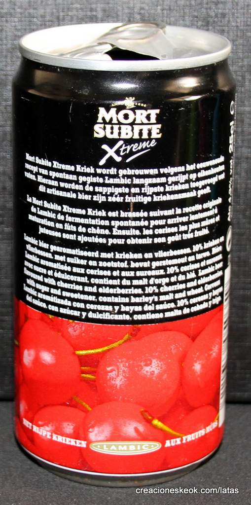 Cerveza Lambic con un toque de cerezas, desde 1721. Toma su nombre de un juego de dados que se jugaba en una cervecería de Bruselas con el mismo nombre: a la Mort Subite.