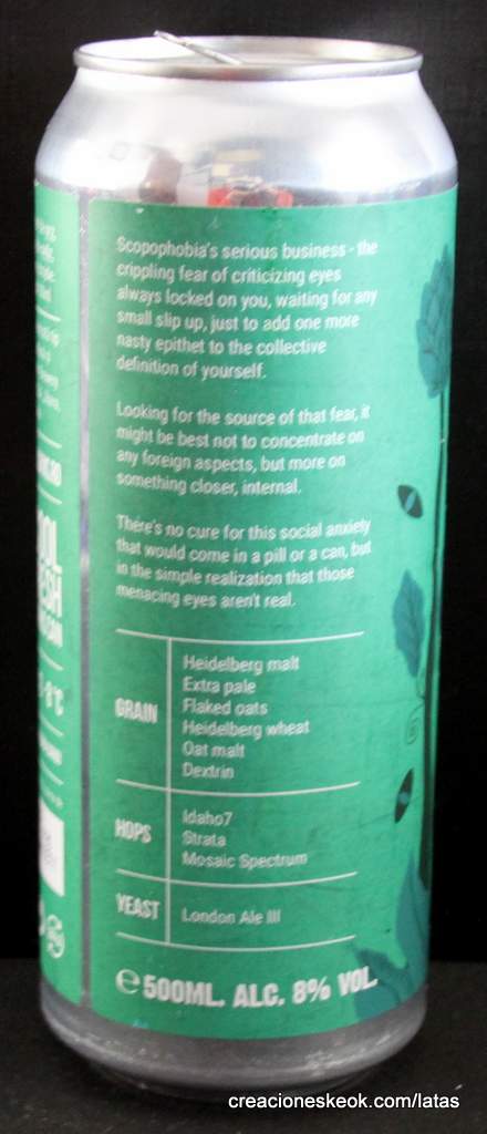 Ingredientes Agua, Granos (Heidelberg, Maris Otter, Copos de avena, Trigo Heidelberg, Malta de avena, Malta de dextrina), Lúpulo (Idaho7, Strata, Mosaic Spectrum), Levadura (London ale III). MIEDO A SÍ MISMO lote no. 2 se está acercando sigilosamente a nosotros con Mosaic Spectrum, Idaho 7 y Strata hops. Hay un frente afrutado completo en este con una mezcla de cítricos y frutas tropicales poco maduras, contrastado por una mordida amarga resinosa aguda en el final. Este vaso de joose contraataca, al parecer.