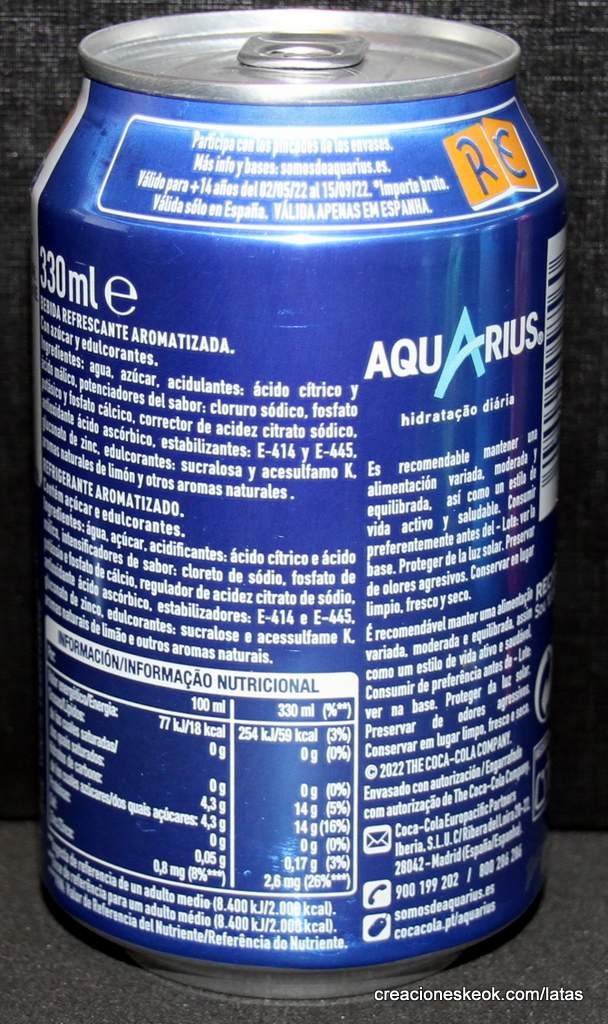 AQUARIUS ZERO AZÚCAR SIN CALORÍAS. RE