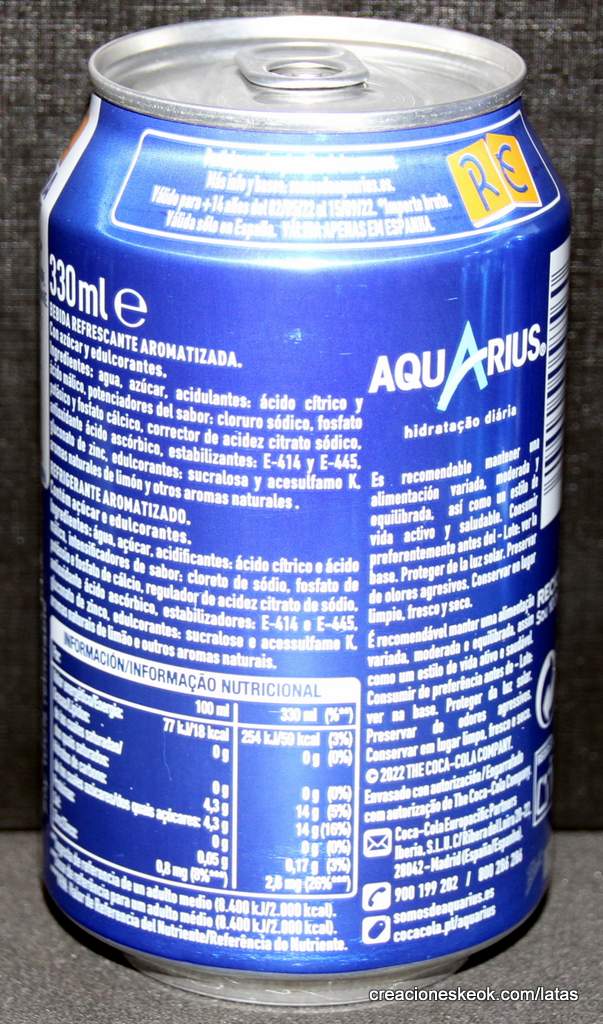 AQUARIUS ZERO AZÚCAR SIN CALORÍAS. RE