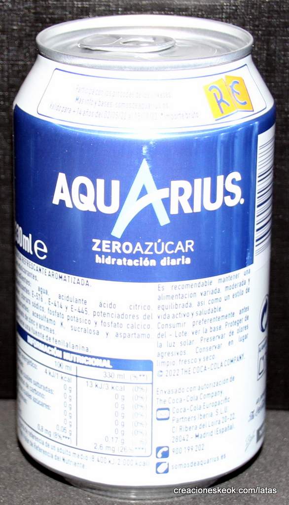 AQUARIUS ZERO AZÚCAR SIN CALORÍAS. RE