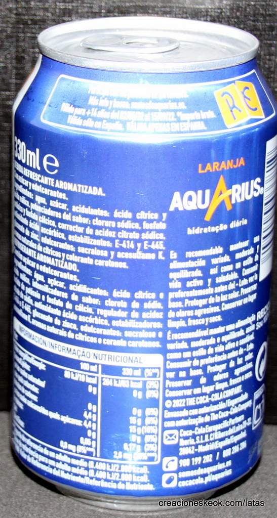 AQUARIUS ZERO AZÚCAR SIN CALORÍAS. RE
