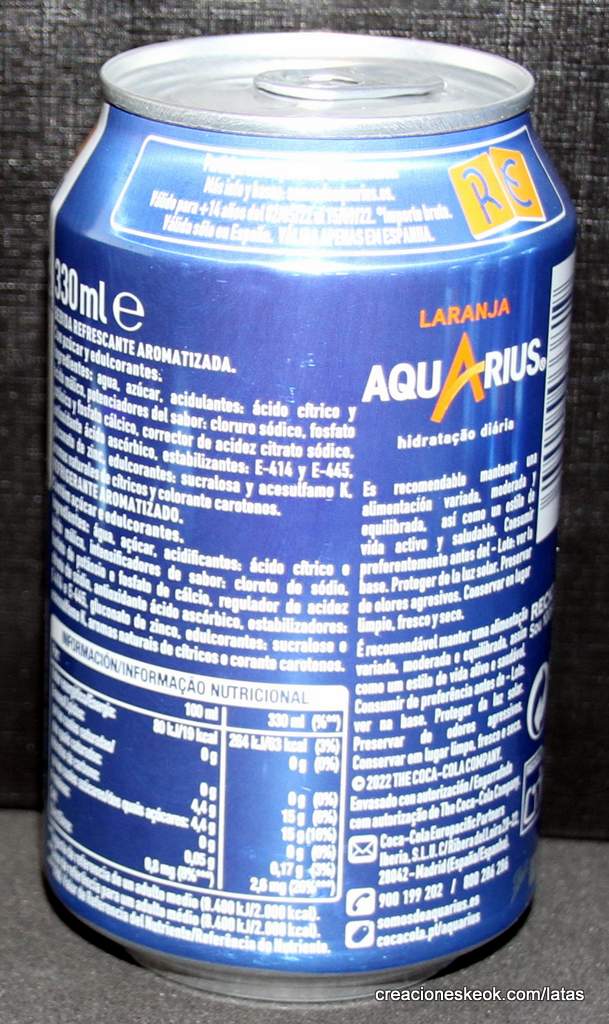AQUARIUS ZERO AZÚCAR SIN CALORÍAS. RE