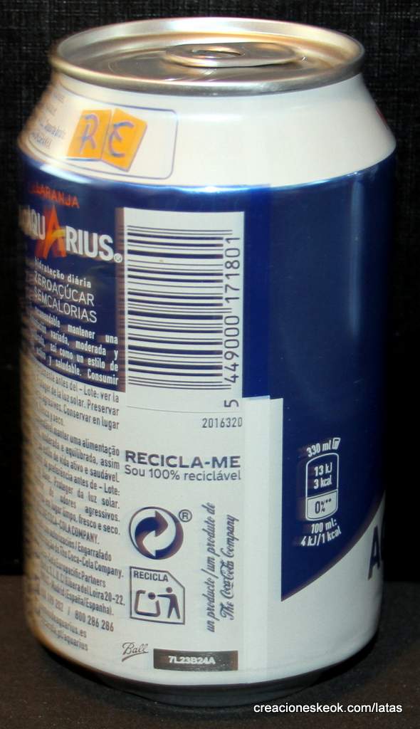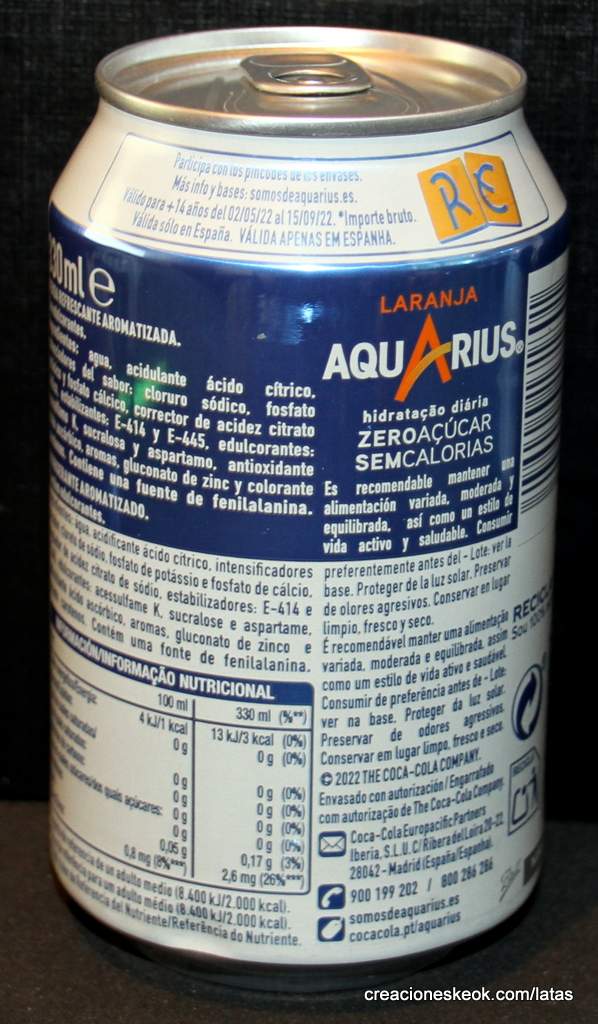 AQUARIUS ZERO AZÚCAR SIN CALORÍAS. RE