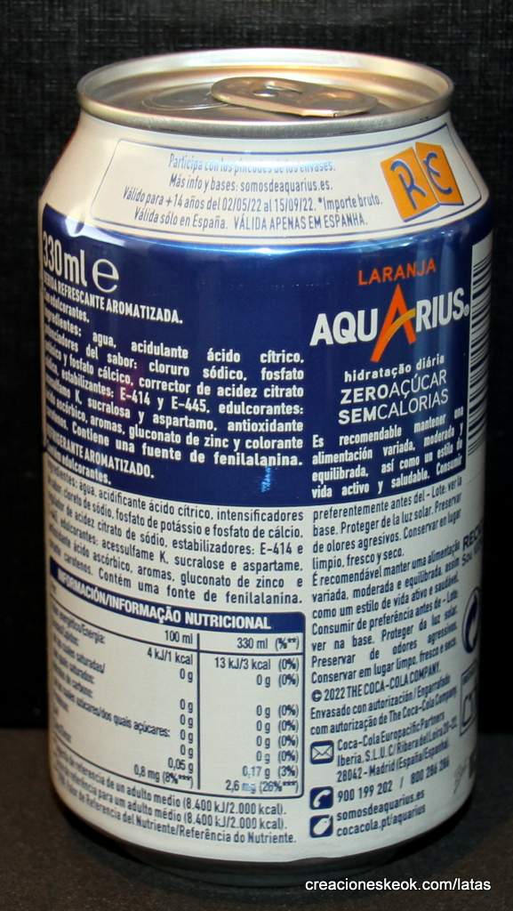 AQUARIUS ZERO AZÚCAR SIN CALORÍAS. RE