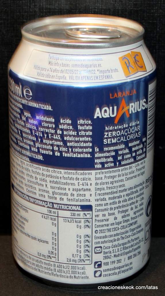 AQUARIUS ZERO AZÚCAR SIN CALORÍAS. RE