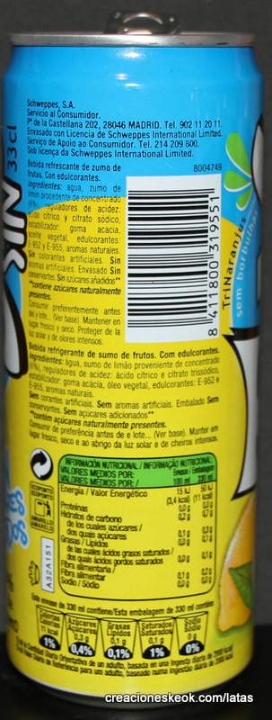 TriNa es una marca española de bebidas refrescantes sin gas. Fue el primer refresco de frutas sin burbujas en el mercado español sin gas, nacido en 1934 y con el nombre de TriNaranjus por su contenido: el zumo de tres naranjas. TriNa es una marca del grupo Schweppes Suntory España. Los orígenes de la TriNa se remontan a los años 30. Fue la creación de un pionero, el Dr. Trigo, que en 1934, desde su laboratorio de la calle Sagunto, lanzó en Valencia un refresco de naranja muy natural, sin burbujas, al que bautizó como Trinaranjus. Este nombre viene porque la base de su receta son tres variedades de naranja diferentes: Naranja Valencia, Salustiana y Cadenera. La compañía se expandió a lo largo de los años, hasta que en 1986 la marca renovó su imagen, su género (una Trina) y su nombre a TriNa. En 2009, Suntory Group adquiere la compañía Orangina Schweppes, y con ello, la marca TriNa. Este producto se comercializa en España y Portugal tanto en hostelería como en supermercados e hipermercados. Fuente : Wikipedia Leer un poco más de su historia