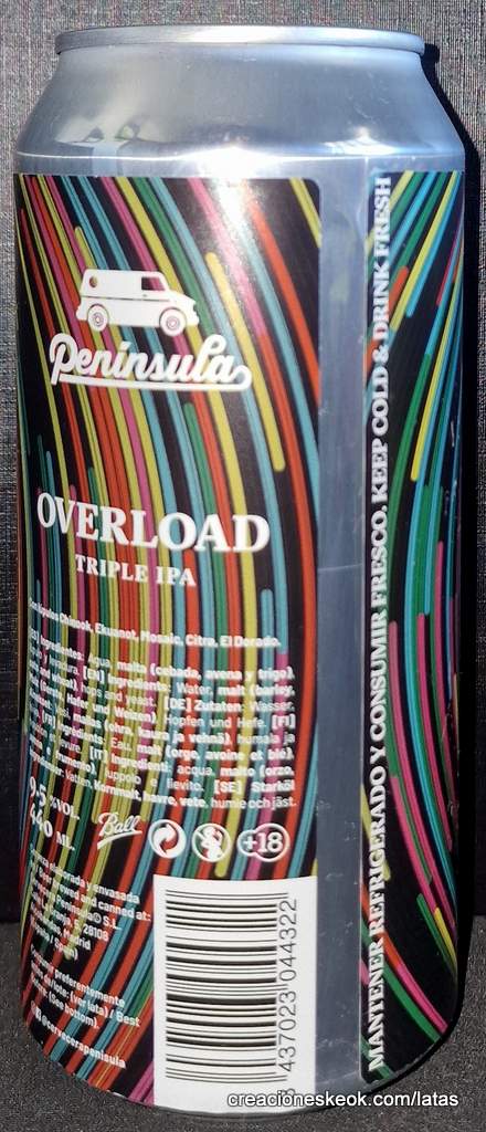 Overload es una Triple IPA de 9,5%, elaborada con lúpulos Chinook, Ekuanot, Mosaic, Citra y El Dorado. Una sobrecarga de lúpulo con mucho cuerpo, un punto cítrico y notas tropicales y fruta de hueso.
