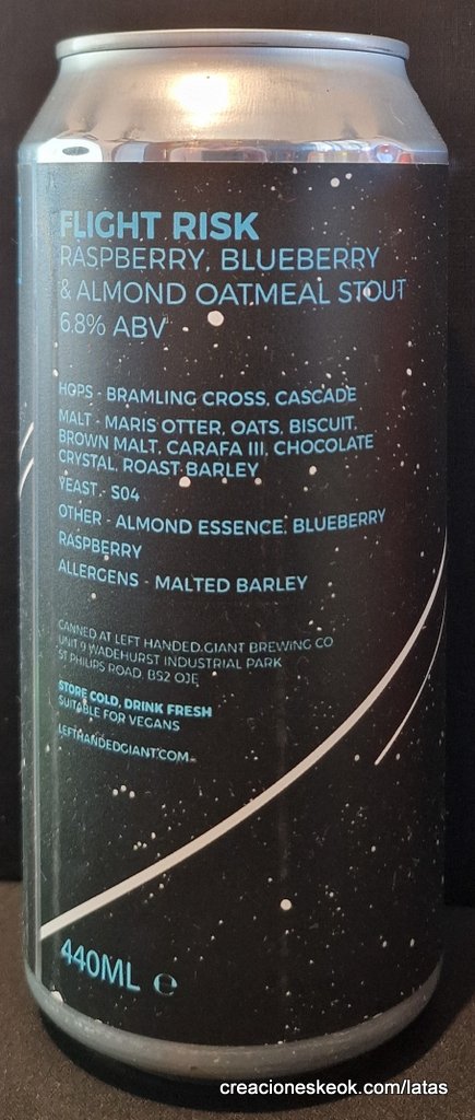 LEFT HANDED GIANT (LHG) FLIGHT RISK. RASPBERRY BLUEBERRY & ALMOND OATMEAL STOUT