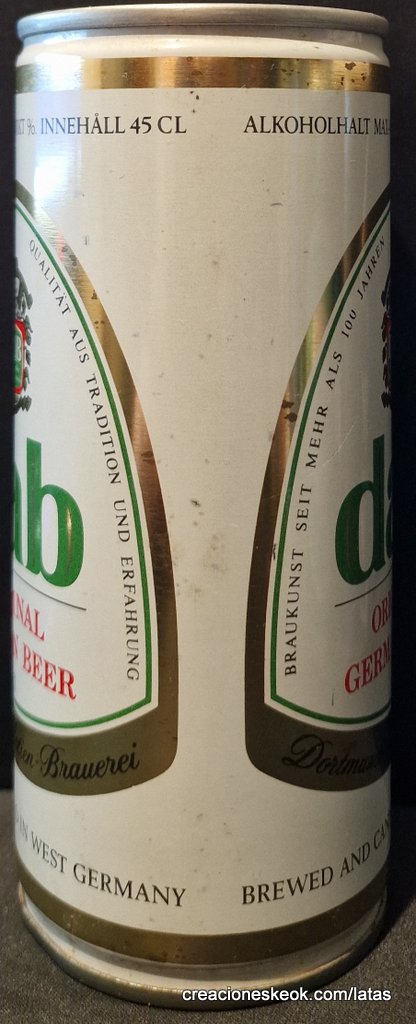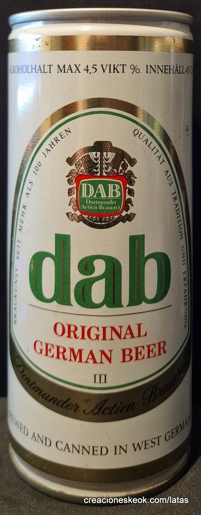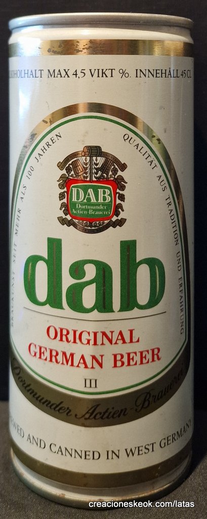Dortmunder Actien Brauerei es una cervecería alemana en la ciudad de Dortmund , fundada en 1868 por los empresarios Laurenz Fischer y Heinrich y Friedrich Mauritz junto con el maestro cervecero Heinrich Herberz. Originalmente, se llamaba Herberz & Co Brewery (Bierbrauerei Herberz & Co.). Debido a que los negocios mejoraron constantemente, la compañía se expandió y se hizo pública en 1872, cambiando su nombre a "Dortmunder Actien Brauerei" (Dortmund Joint Stock Brewery). En 1879, la empresa comenzó a exportar su cerveza a nivel internacional. En 1881, el propio Carl von Linde equipó la cervecería con una de sus máquinas de refrigeración, lo que permitió un auge de cerveza fermentada en el fondo . En 1893, la cervecería estableció un laboratorio químico y bacteriológico. Aunque la Primera Guerra Mundial provocó un colapso en la producción de cerveza, la cervecería estaba equipada con su propia conexión ferroviaria en 1917. Después de la destrucción casi total de Dortmund en la Segunda Guerra Mundial , la cervecería fue reconstruida en 1949. De 1959 a 1963, DAB cambió de los viejos barriles de madera a nuevos de aluminio. La fábrica de cerveza Hansa, un competidor local, fue adquirida en 1971. Por sus motivos, DAB erigió una nueva cervecería moderna, terminada en 1983, en ese momento la más grande del área del Ruhr . Sin embargo, el costo de la adquisición de Hansa fue considerable y agobió a DAB durante los próximos años. Las decisiones cuestionables por parte de la gerencia de la compañía en la década de 1990 agravaron la situación, lo que llevó a un colapso de las marcas de la compañía y al aumento de la producción de marcas genéricas para aprovechar las capacidades. Incluso la adquisición de las marcas de otro competidor local en dificultades económicas, la fábrica de cerveza Kronen, no pudo detener la tendencia a la baja que hasta hoy, a pesar de que la compañía es la última cervecería en Dortmund, no se ha detenido por completo. El accionista más destacado hoy en día es el grupo Radeberger de cervecerías, que a su vez pertenece a la compañía fundada por August Oetker , hoy en día uno de los jugadores más destacados en la industria de alimentos y bebidas de Alemania. DAB produce una cerveza llamada DAB después de sus iniciales. DAB también fue la cerveza favorita de Erich Honecker , ex líder de Alemania Oriental. Fuente: Wikipedia