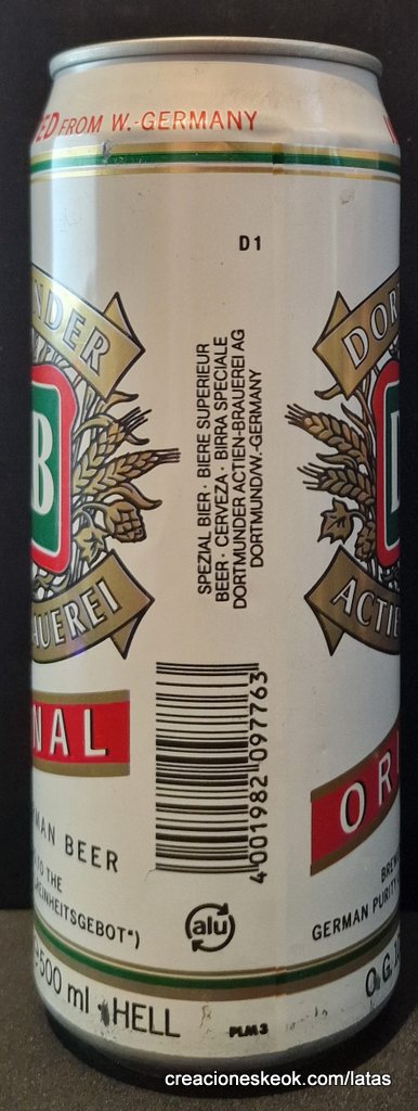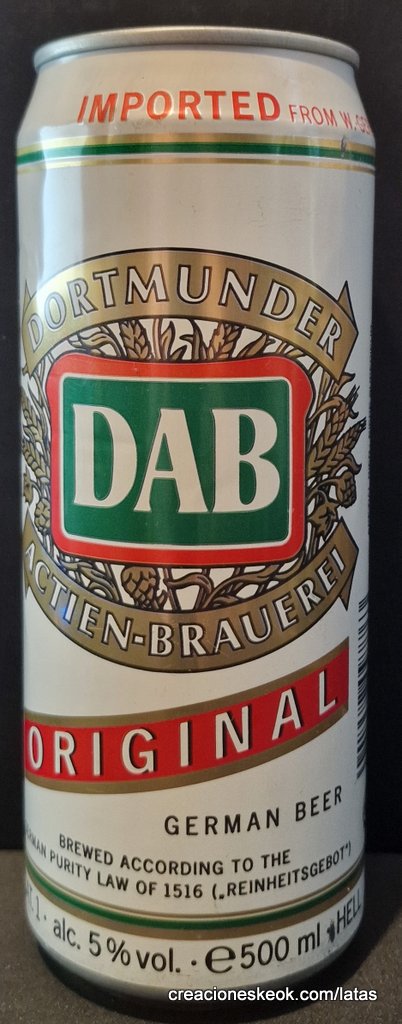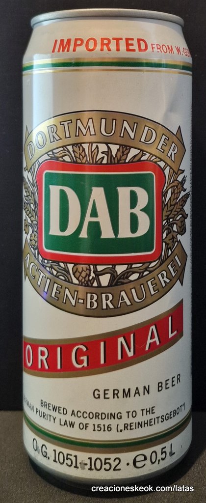 Dortmunder Actien Brauerei es una cervecería alemana en la ciudad de Dortmund , fundada en 1868 por los empresarios Laurenz Fischer y Heinrich y Friedrich Mauritz junto con el maestro cervecero Heinrich Herberz. Originalmente, se llamaba Herberz & Co Brewery (Bierbrauerei Herberz & Co.). Debido a que los negocios mejoraron constantemente, la compañía se expandió y se hizo pública en 1872, cambiando su nombre a "Dortmunder Actien Brauerei" (Dortmund Joint Stock Brewery). En 1879, la empresa comenzó a exportar su cerveza a nivel internacional. En 1881, el propio Carl von Linde equipó la cervecería con una de sus máquinas de refrigeración, lo que permitió un auge de cerveza fermentada en el fondo . En 1893, la cervecería estableció un laboratorio químico y bacteriológico. Aunque la Primera Guerra Mundial provocó un colapso en la producción de cerveza, la cervecería estaba equipada con su propia conexión ferroviaria en 1917. Después de la destrucción casi total de Dortmund en la Segunda Guerra Mundial , la cervecería fue reconstruida en 1949. De 1959 a 1963, DAB cambió de los viejos barriles de madera a nuevos de aluminio. La fábrica de cerveza Hansa, un competidor local, fue adquirida en 1971. Por sus motivos, DAB erigió una nueva cervecería moderna, terminada en 1983, en ese momento la más grande del área del Ruhr . Sin embargo, el costo de la adquisición de Hansa fue considerable y agobió a DAB durante los próximos años. Las decisiones cuestionables por parte de la gerencia de la compañía en la década de 1990 agravaron la situación, lo que llevó a un colapso de las marcas de la compañía y al aumento de la producción de marcas genéricas para aprovechar las capacidades. Incluso la adquisición de las marcas de otro competidor local en dificultades económicas, la fábrica de cerveza Kronen, no pudo detener la tendencia a la baja que hasta hoy, a pesar de que la compañía es la última cervecería en Dortmund, no se ha detenido por completo. El accionista más destacado hoy en día es el grupo Radeberger de cervecerías, que a su vez pertenece a la compañía fundada por August Oetker , hoy en día uno de los jugadores más destacados en la industria de alimentos y bebidas de Alemania. DAB produce una cerveza llamada DAB después de sus iniciales. DAB también fue la cerveza favorita de Erich Honecker , ex líder de Alemania Oriental. Fuente: Wikipedia