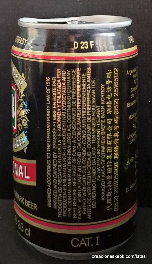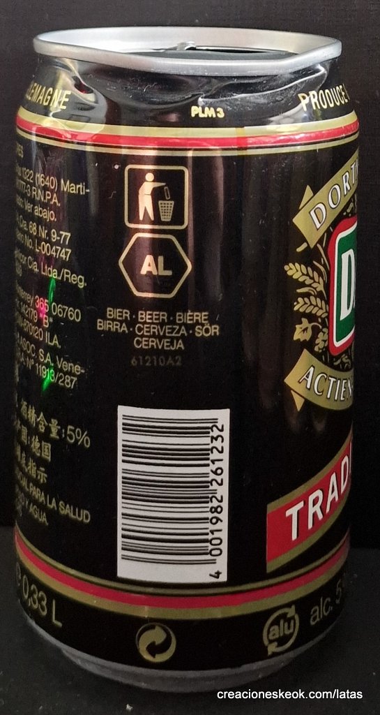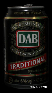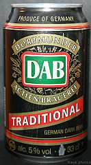 Dortmunder Actien Brauerei es una cervecería alemana en la ciudad de Dortmund , fundada en 1868 por los empresarios Laurenz Fischer y Heinrich y Friedrich Mauritz junto con el maestro cervecero Heinrich Herberz. Originalmente, se llamaba Herberz & Co Brewery (Bierbrauerei Herberz & Co.). Debido a que los negocios mejoraron constantemente, la compañía se expandió y se hizo pública en 1872, cambiando su nombre a "Dortmunder Actien Brauerei" (Dortmund Joint Stock Brewery). En 1879, la empresa comenzó a exportar su cerveza a nivel internacional. En 1881, el propio Carl von Linde equipó la cervecería con una de sus máquinas de refrigeración, lo que permitió un auge de cerveza fermentada en el fondo . En 1893, la cervecería estableció un laboratorio químico y bacteriológico. Aunque la Primera Guerra Mundial provocó un colapso en la producción de cerveza, la cervecería estaba equipada con su propia conexión ferroviaria en 1917. Después de la destrucción casi total de Dortmund en la Segunda Guerra Mundial , la cervecería fue reconstruida en 1949. De 1959 a 1963, DAB cambió de los viejos barriles de madera a nuevos de aluminio. La fábrica de cerveza Hansa, un competidor local, fue adquirida en 1971. Por sus motivos, DAB erigió una nueva cervecería moderna, terminada en 1983, en ese momento la más grande del área del Ruhr . Sin embargo, el costo de la adquisición de Hansa fue considerable y agobió a DAB durante los próximos años. Las decisiones cuestionables por parte de la gerencia de la compañía en la década de 1990 agravaron la situación, lo que llevó a un colapso de las marcas de la compañía y al aumento de la producción de marcas genéricas para aprovechar las capacidades. Incluso la adquisición de las marcas de otro competidor local en dificultades económicas, la fábrica de cerveza Kronen, no pudo detener la tendencia a la baja que hasta hoy, a pesar de que la compañía es la última cervecería en Dortmund, no se ha detenido por completo. El accionista más destacado hoy en día es el grupo Radeberger de cervecerías, que a su vez pertenece a la compañía fundada por August Oetker , hoy en día uno de los jugadores más destacados en la industria de alimentos y bebidas de Alemania. DAB produce una cerveza llamada DAB después de sus iniciales. DAB también fue la cerveza favorita de Erich Honecker , ex líder de Alemania Oriental. Fuente: Wikipedia