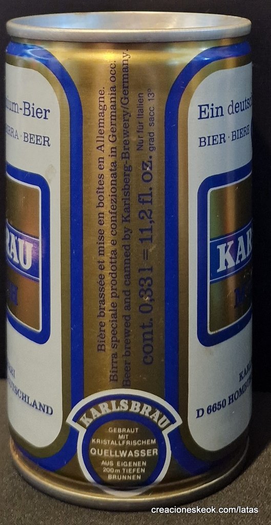 KARLSBERG fundada en el año 1878 en la ciudad de Homburgo, es una de las mayores empresas fabricantes de cervezas de Alemania; el Grupo Karlsberg es también propietario de otras marcas de cerveza. Fuera de Alemania es denominada KARLSBRÄU. Líder de ventas en Alemania en categorías de cervezas mix y sin alcohol. Las cervezas Karlsbräu se elaboran de acuerdo con la ley de pureza alemana.