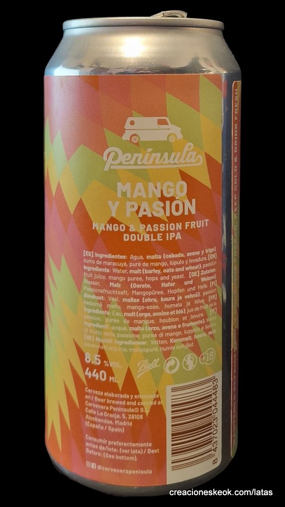 Mango y Pasión es una Doble IPA de 8.5% con Mango y Maracuyá.