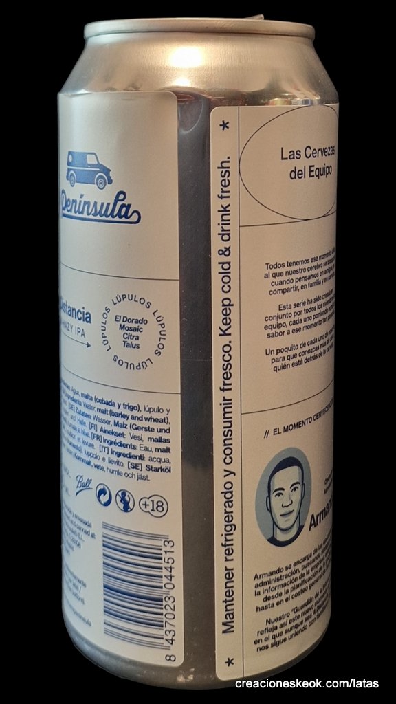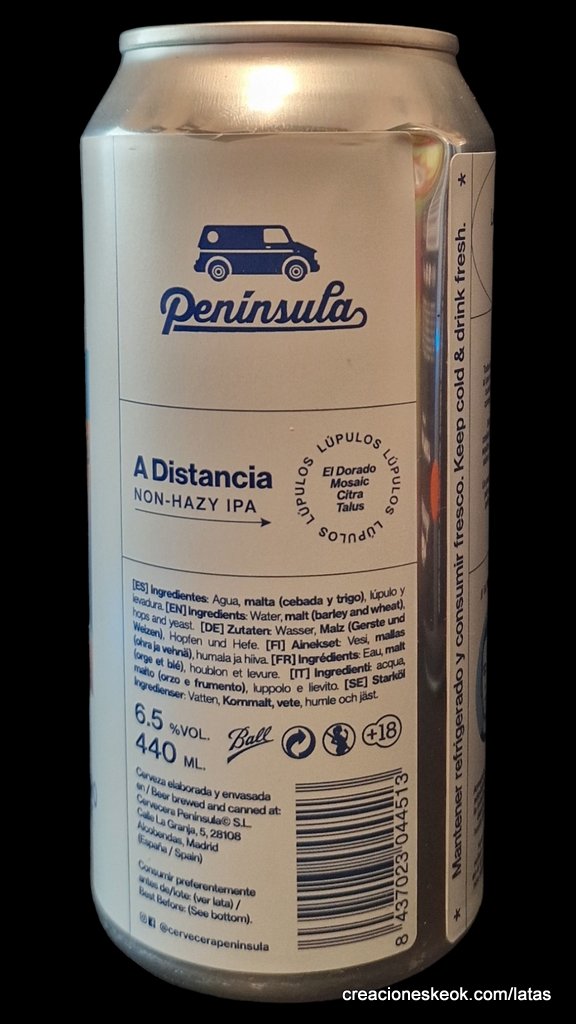 A Distancia es una Non-Hazy IPA de 6.5% elaborada con lúpulos El Dorado, Mosaic, Citra & Talus. Forma parte de la serie de cervezas diseñadas por cada miembro del equipo Península. En esta, Armando, nuestro encargado de operaciones y administración,refleja así este nuevo momento cervecero, en el que aunque sea A Distancia, la cerveza nos sigue uniendo con familiares y amigos.