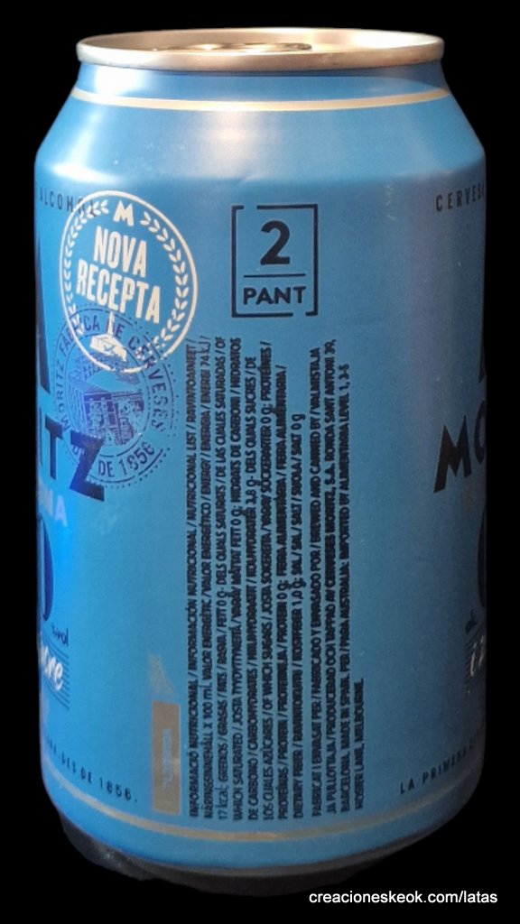La nueva Moritz 0,0 es una cerveza sin alcohol y cero azúcares, con todas las propiedades y el sabor de la cerveza. Mantiene el cuerpo, el sabor y las propiedades de una cerveza; en un formato 100% saludable. Se parte de una cerveza totalmente fermentada en la que la levadura transforma todos los azúcares del mosto en alcohol y dióxido de carbono. Posteriormente, el alcohol se evapora a baja temperatura y baja presión.