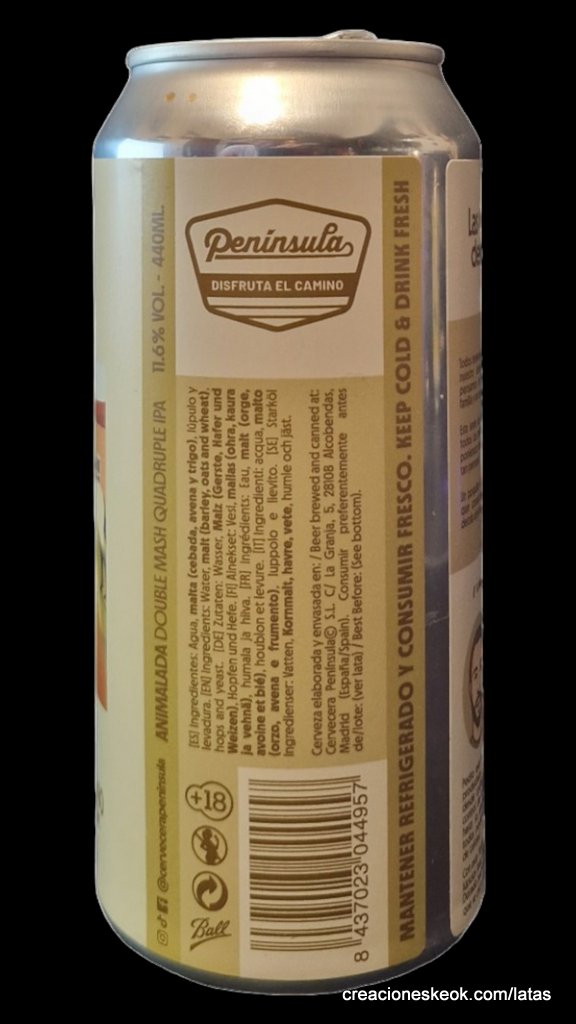 Animalada es una Quadruple IPA de 11.6% con doble mash rebosante de lúpulos Talus, Chinook, Vic Secret, Idaho 7 y El Dorado. Una cerveza diseñada por nuestro brewer Pedro, en la que hace un guiño a los animales con los que se crió y sigue conviviendo.