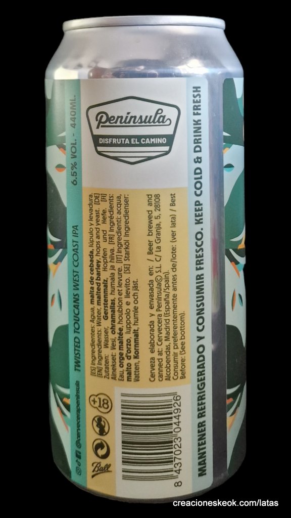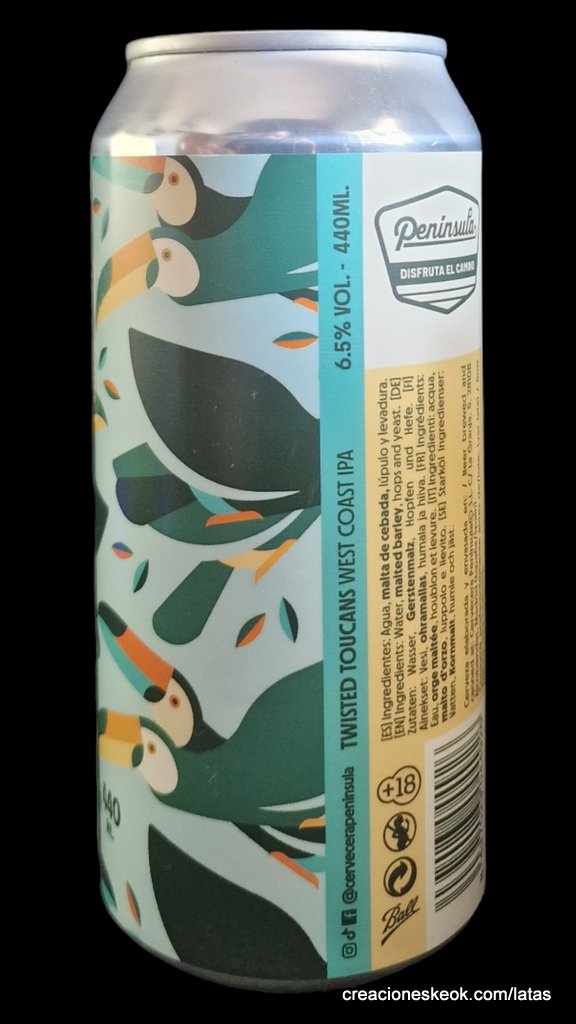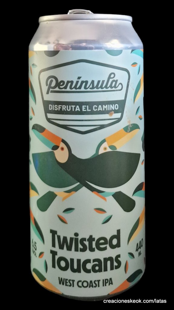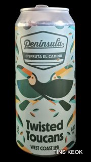 Cervecera Península Twisted Toucans es una West Coast IPA elaborada con 4 maltas de cereal que incluye Pale Ale, Dextrins, Vienna y Acid Malt. Para los lúpulos se ha seleccionado una combinación que incluye Citra, Sabro, Mosaic y HBC 630. Clásica y muy bebible al mismo tiempo.