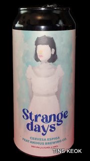 Strange days es una IPA DDH que hemos elaborado en colaboración con nuestros amigos de Animus. Es de color amarillenta con toques anaranjados, con espuma blanca cremosa y persistente en boca y cuerpo medio. En aroma y gusto encontramos notas de frutas tropicales como mango o maracuya aportadas por el lúpulo Mosaic y también encontramos notas de grosella y de vino blanco que aporta el lúpulo Nelson sauvin. lúpulo Nelson sauvin Malts: Malta de cebada, malta de avena, trigo, copos de avena. Lúpulos: Nelson sauvin, Mosaic Cryo