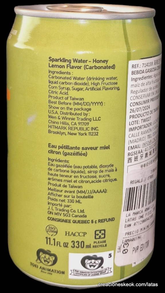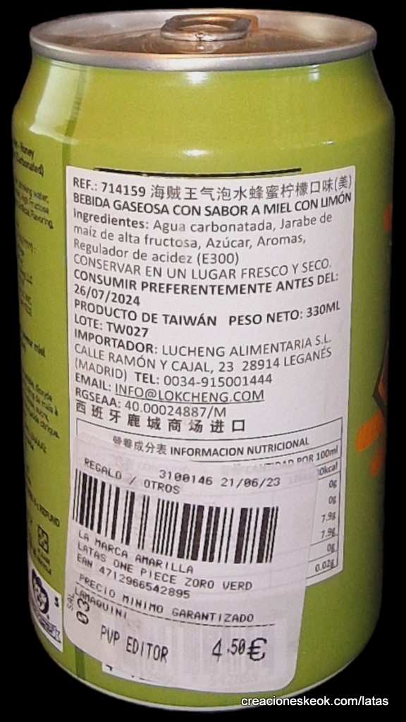 Agua gaseosa One Piece sabor a Miel y Limon edición One Piecel ... Saborea la nueva y refrescante Ocean Boom con diseño de Zoro ¡Colecciona sus latas especiales de One Piece!