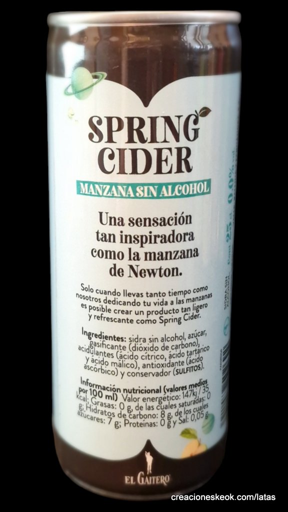 Una sensación tan inspiradora como la manzana de Newton. Spring Cider Manzana Sin Alcohol es una sidra que se elabora con manzanas seleccionadas consiguiendo una suavidad y acidez perfectamente equilibradas a la que se le extrae el alcohol (<0.5º). Es perfecta para disfrutar en la playa o en la montaña, en el aperitivo o en una tarde con amigos. Tómala muy fría, en vaso ancho con 2 piedras de hielo o directamente de la lata.