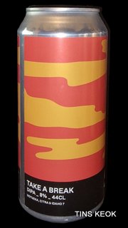 Soma Beer Take A Break es una cerveza artesanal de estilo DIPA. Ha sido elaborada con maltas de cebada, trigo y avena. Con una selección de lúpulos en dry-hopping que incluyen Motueka, Citra y Idaho 7. Esta cerveza artesana, Soma Beer Take A Break, tiene un cuerpo medio y jugoso, brumoso, de color dorado pálido.