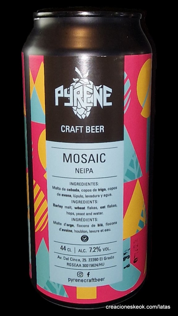 MOSAIC: NEIPA de 7,2% ABV elaborada con lúpulo Mosaic o HBC369, un lúpulo muy difícil de trabajar pero que aporta unas notas muy características a la cerveza. Es un lúpulo americano que aporta notas cítricas, como a limón, además de aromas a pino, hierba y fruta tropical (principalmente mango).
