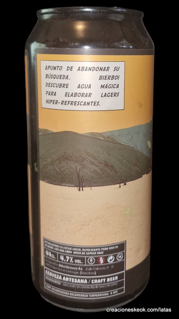 Cerveza artesana Lager con perfil de Pilsner Checa, algo amarga y seca, con lúpulo Saaz floral y cítrico para otorgarle una mayor complejidad organoléptica y mediterránea tanto en aroma como amargor. A punto de abandonar su búsqueda, Bierboi descubre agua mágica para elaborar Lagers hiper-refrescantes.