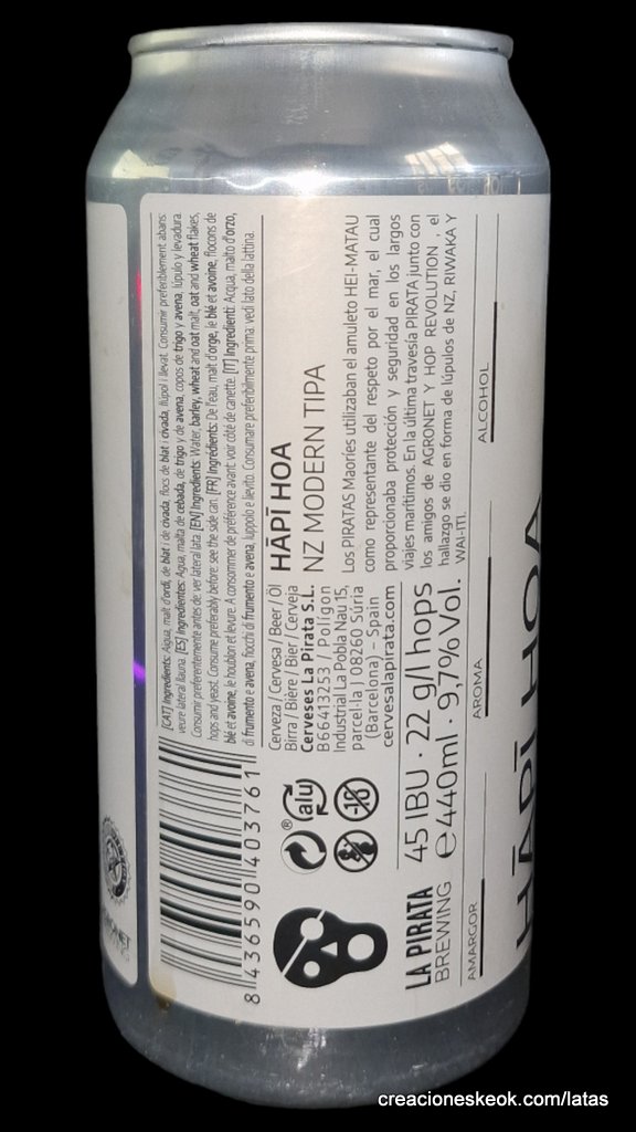 La Pirata – Hapi Hoa. Cerveses La Pirata tienen en su haber uno cuantos clásicos cerveceros. Esto antes de ser premiados en la categoría de mejor cervecera en el Barcelona Beer Festival 2019. Su premio solo ha venido a refrendar una sólida carrera como cervecera desde 2015. La Pirata junto con Agronet y Hop Revolution, nos traen el amuleto HEI-MATAU que empleaban los piratas maoríes, para pedir protección y seguridad en los largos viajes marítimos. Al final del viaje parece que han llegado a Nueva Zelanda y nos han elaborado una New Zealand Modern TIPA de 9.7% y 45 IBUs, con los lúpulos australes Wai-Iti y Riwaka.