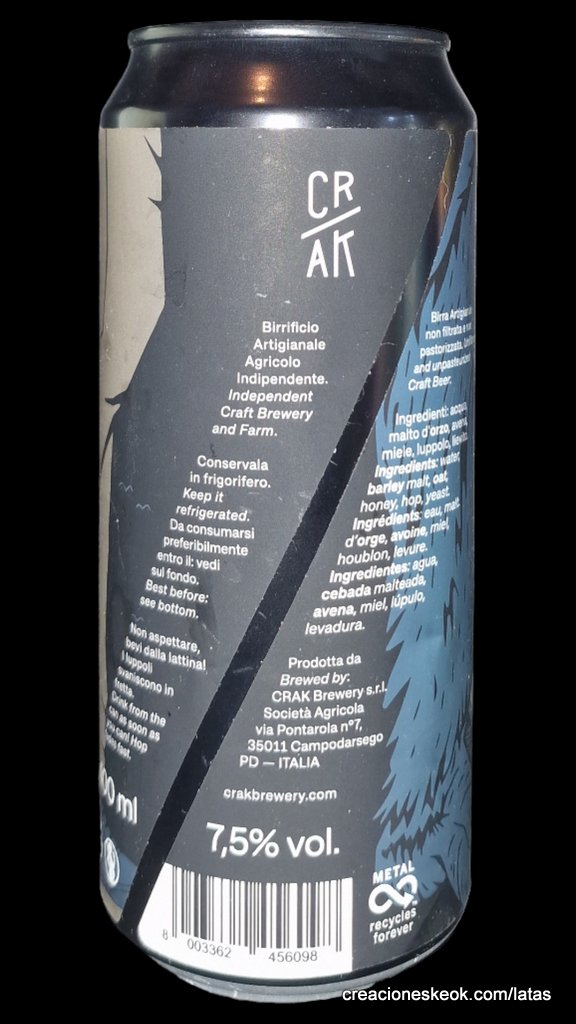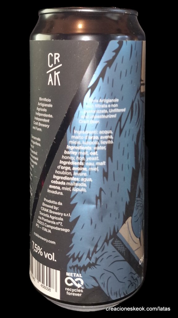 Cerveza gracias al API TREATMENT esta cerveza se convierte en una DDH IPA potente y a la vez suave, fresca y rebosante de aromas y gustos frutaels. La propia cervecera la define como un batido de frutas frescas (papaya, mango, melocotón amarillo) con miel. Maridaje: para con pescados a la parrilla y a la brasa, y con quesos curados. Curiosidad: Api Treatment (TM) es un tratamiento natural patentado por CRAK BREWERY que permite amplificar los aromas y aromas del lúpulo en la cerveza de manera exponencial. Este tratamiento combina nuevas tecnologías con nuevos procesos de producción y permite el uso de grandes cantidades de lúpulo en combinación con pequeñas dosis de miel durante algunas etapas específicas del proceso de producción. Después de meses de experimentación, nace esta cerveza producida con este nuevo método de uso de lúpulo.