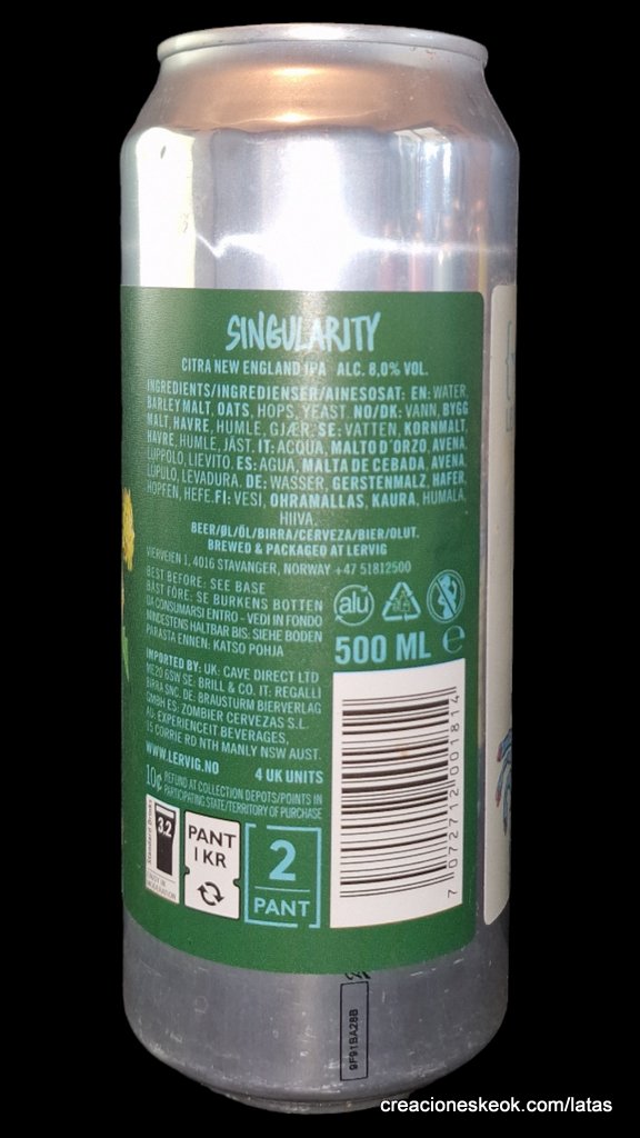 Singularity es una IPA bomba de jugo de avena con un solo lúpulo de Citra que probablemente podría desencadenar el nacimiento de la IA si los robots alguna vez la tuvieran en sus manos.