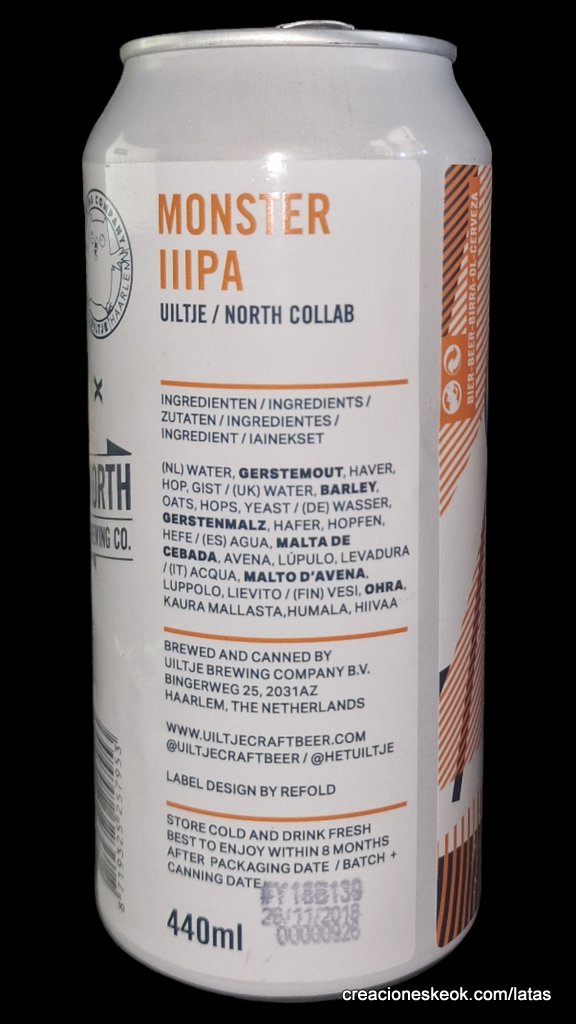 La impresionante Monster IIIPA de Uiltje es una Triple-IPA con un enorme 18% ABV, pero no te dejes engañar ya que esta cerveza es más bella que la bestia! A pesar de que el ABV se encuentra más comúnmente en los cócteles, Monster IIIPA esconde bien su lado alcohólico. El cuerpo naranja y la espuma blanca y apretada esconden el clásico lúpulo d'una Imperial IPA, con toques de cítricos frescos, naranja confitada y pino, junto a dulces maltas de caramelo, todo ello envuelto en un cuerpo suave y lleno. Suave hasta la última gota y sin quemaduras de alcohol, esta cerveza es realmente impresionante y prueba de la habilidad de Uiltje.