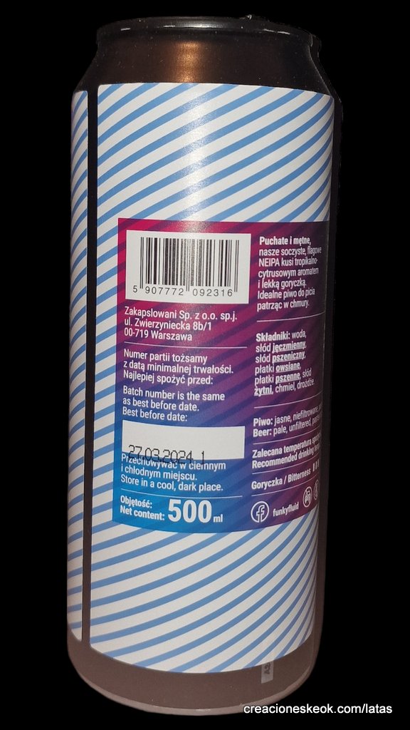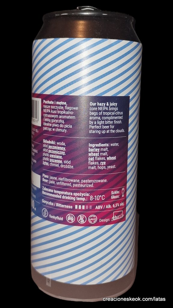 Funky Fluid DDH Cloudy es una NEIPA con doble dry-hopping de lúpulos Citra, Mosaic, y Lotus. Con un suave 6.5% de ABV y una sensación cremosa en boca. Tiene un cuerpo medio, brumoso, de un color anaranjado pálido y una corona de espuma blanca, esponjosa y perecedera. Una bomba de aromas y sabores afrutados, tropicales y cítricos que te va a despejar la mente. Excelentes notas de piña, melocotón, mango y cítricos refrescantes.
