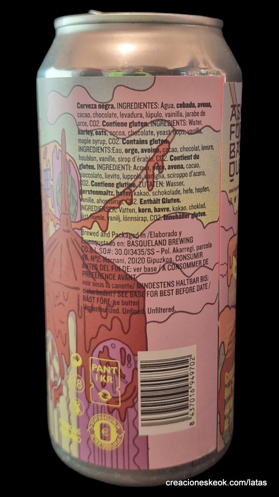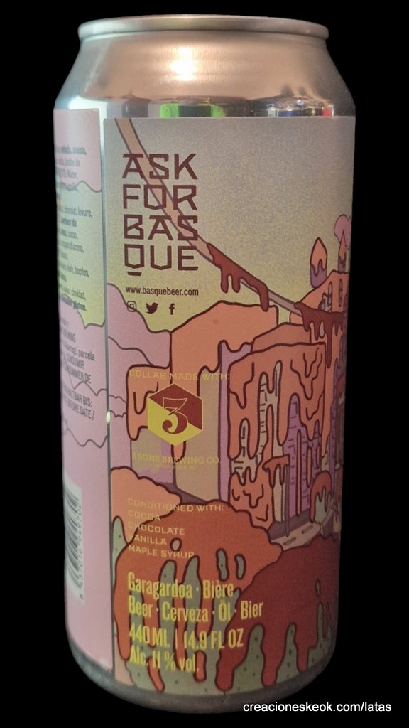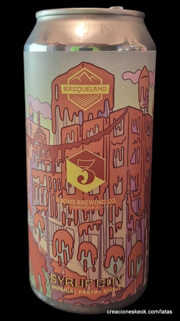 Imperial Pastry Stout elaborada en colaboración con nuestro amigo Corey Artanis de 3 Sons Brewing, en Florida. Acondicionada con cacao, chocolate, vainilla y jarabe de arce. Con un intenso sabor a maltas tostadas y sabrosos añadidos, esta cerveza se presenta densa en boca, ofreciendo un baño de sabores donde lo amargo y lo dulce coexisten en perfecta armonía. Visita está ciudad de sirope cuyas paredes se funden a tus pies.