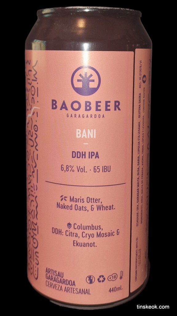Baobeer Bani es una cerveza artesana vasca de estilo DDH IPA elaborada por Baobeer en el País Vasco. Doble Dry Hopping con lúpulos Citra, Mosaic y Ekuanot. Notas afrutadas de la levadura combinadas con la cremosidad que aporta la malta.