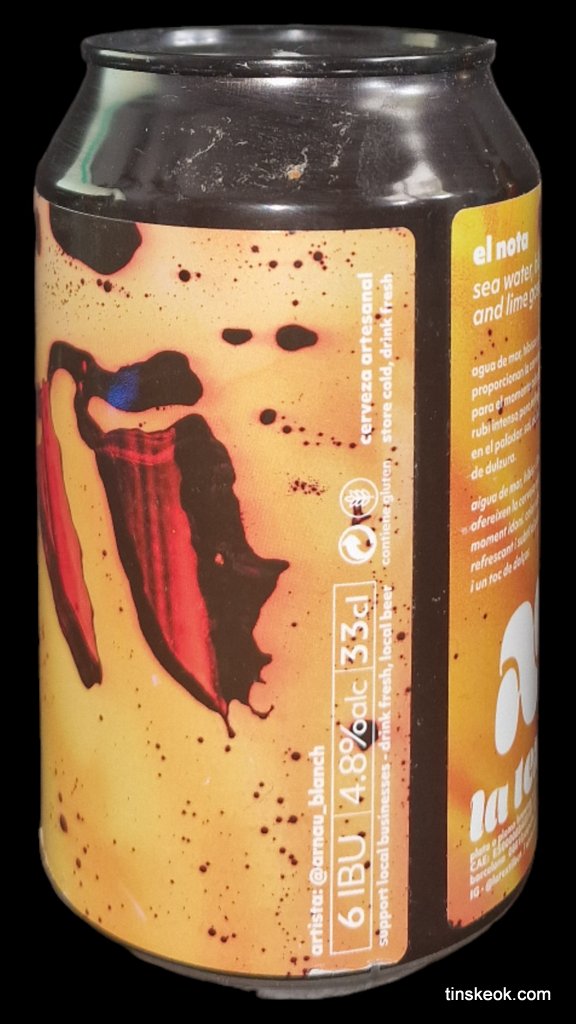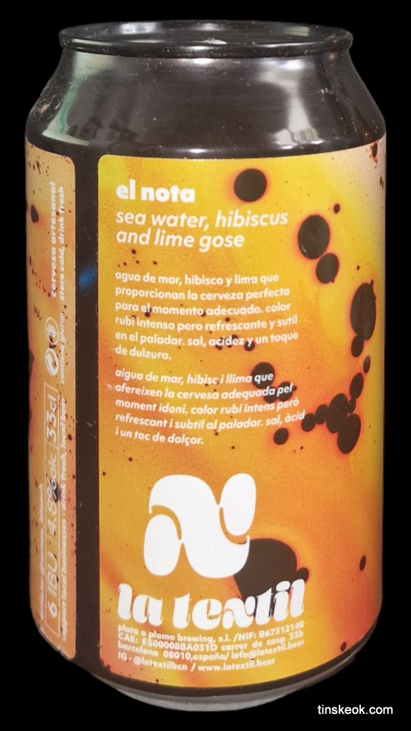 Prolongamos la transición en tonos ácidos y lo hacemos sin movernos de tierras catalanas, que son de lo más animado e interesente del panorama cervecero actual. Introducimos y presentamos una nueva referencia. La Textil es un brewpub fundado por Brian Blazek. Abrió puertas en el eixample barcelonés durante 2020. Buena fecha, si sobrevives el primer año es que vas directo al éxito… Pero van con argumentos: un local guapo, comida atractiva y buenas birras que van componiendo un catálogo variado y creciente. Para muestra, la que sigue. El Nota es una Gose de 4,8º y 6 IBUS, elaborada con agua de mar, lima e hibisco. La lata es de 33 cl y bien chula. Servido el contenido, luce una pinta que recuerda a un tinto de verano, muy apetecible, con una capa mediana y breve de espuma rosada. El aroma es alegre y fresco, floral y cítrico, como se espera. Y el trago igual de jovial, veraniego, sencillito. Los mismos sabores frescos y perfumados excitan las papilas, apoyados con moderación en un punto salino y otro ácido. El desenlace quiere ser mineral, el amargor tiende a cero. Pasa con facilidad, evita cualquier complicación y deja un regusto más ácido que salino. Para lo que es y promete, impecable.