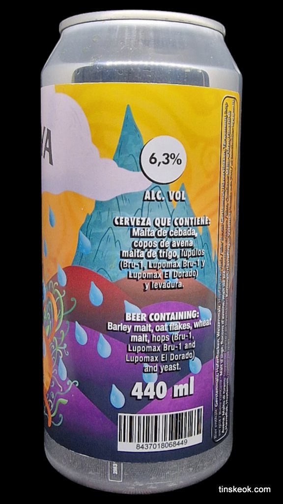Neipa elaborada con lúpulos El Dorado y Bru-1. Cremosa y equilibrada, con notas a melocotón y mango.