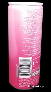 Uva, mosto de uva, dióxido de carbono, conservante (dióxido de azufre, sorbato de potasio), estabilizador (ácido cítrico)