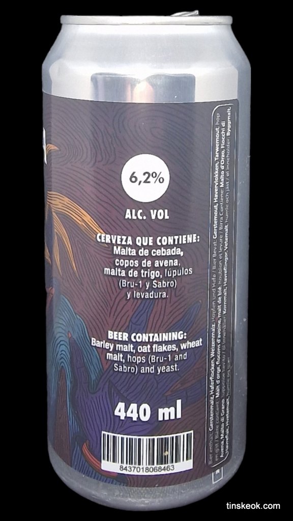 West Coast style american IPA dry hopped con Bru-1 y Sabro . Amarga y seca pero con un toque maltoso producido por la malta Maris Otter, buen balance entre el caracter frutal y ligeramente a coco y madera que dejan las notas muy pequeñas de Sabro añadido al inicio de la fermentació.