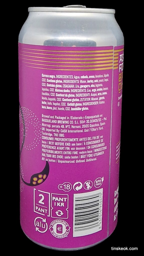 Cerveza de tipo stout con avena que destaca por ser seca, fácil de beber y a la vez cremosa. Elaborada con 6 maltas diferentes seleccionadas para obtener aromas robustos y elegantes a cacao, granos de café, fruta seca y regaliz. Una creación clásica del catalogo de Basqueland que vuelve ahora por tiempo limitado. Negra como la tinta del chipirón.