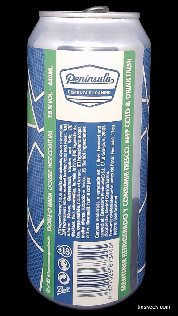 Península Doble O Nada es una cerveza de Madrid, tipo West Coast Doble IPA, con un 7,8% de alcohol.